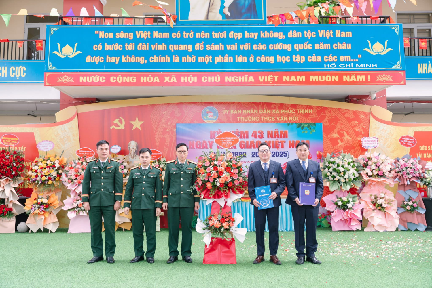 ? Sáng ngày 20/11/2025, Trường THCS Vân Nội long trọng tổ chức chương trình chào mừng 43 năm Ngày Nhà giáo Việt Nam (20/11/1982 - 20/11/2025). Về dự và chúc mừng nhà trường có: