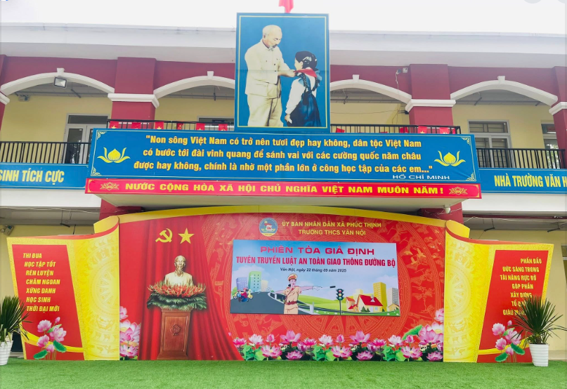 Sáng 22/9/2025, tại 𝐭rường THCS Vân Nội, công an xã Phúc Thịnh, phối hợp cùng Đoàn thanh xã Phúc Thịnh, tổ chức hoạt động 𝐭uyên truyền về trật tự an toàn giao thông (𝐓𝐓𝐀𝐓𝐆𝐓) 𝐝ưới hình thức “Phiên tòa giả định về an toàn giao thông”. Chương trình thu hút 𝟏.𝟎𝟎𝟓 𝐡𝐨̣𝐜 𝐬𝐢𝐧𝐡 𝐭𝐡𝐚𝐦 𝐠𝐢𝐚, nhằm nâng cao nhận thức và ý thức chấp hành pháp luật khi tham gia giao thông.